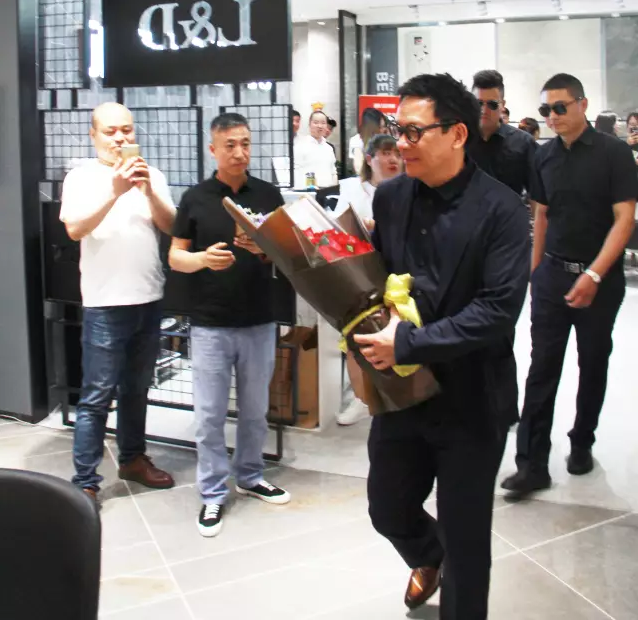 梁志天先生進(jìn)入唯美L&D陶瓷旗艦店,工作人員送上鮮花表示歡迎
